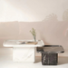 The table top is made of natural stone in lightning black color, carrara mable and artificial cloud white color, is waterproof, stain resistant and easy to clean