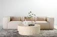 The table legs are monolithically molded from Solid Surface material (a form of artificial stone) reinforced with Glass Fiber to help increase durability and improve load-bearing properties