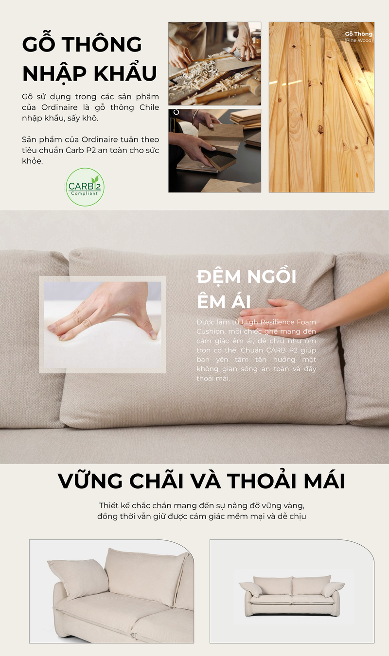 Bộ sưu tập sofa modular từ Ordinaire mang đến cảm giác như một chốn ẩn mình tinh tế — nơi bạn có thể tự do tùy biến mọi chi tiết để tạo nên không gian sống mang đậm dấu ấn cá nhân. Dù là thư giãn đọc sách, làm việc tại nhà hay tiếp khách cuối tuần, modular sofa của Ordinaire thích nghi với từng khoảnh khắc trong ngày. Và hơn cả sự thoải mái, sofa còn cực kỳ dễ lau chùi, dễ sắp xếp, phù hợp với mọi không gian sống và phong cách sống mà bạn theo đuổi