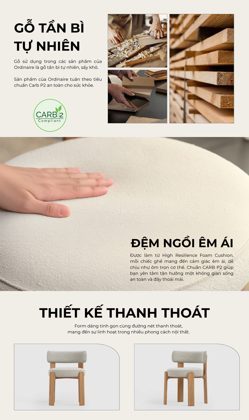Thiết Kế Tối Giản, Dễ Phối Nội Thất: Dáng ghế gọn gàng, đường nét rõ ràng, phù hợp nhiều phong cách nội thất